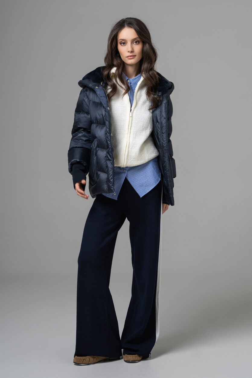 Женский короткий пуховик с капюшоном — стильная и практичная модель для современного города. Укороченный крой подчёркивает фигуру и не ограничивает движения, а мягкий утеплитель обеспечивает комфорт в холодное время года. Модель сочетается с юбками, брюками и платьями, создавая элегантный и уверенный образ. Подходит как для офиса, так и для прогулок.