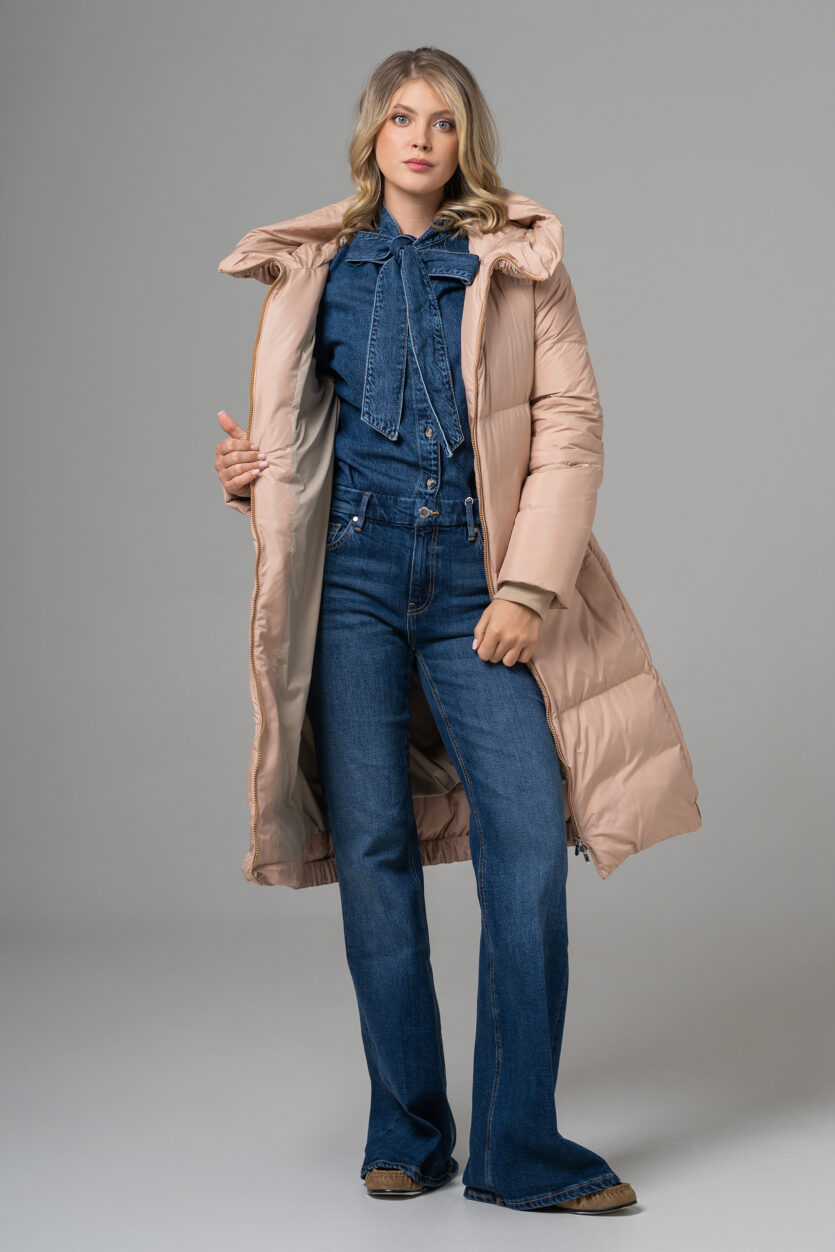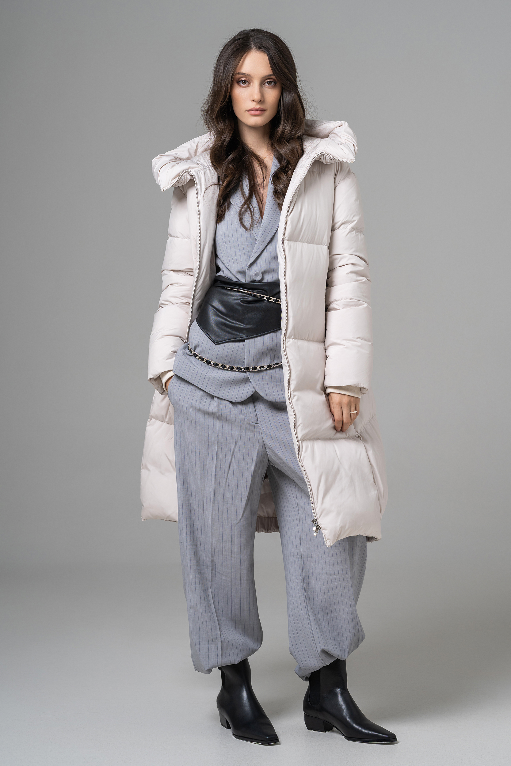Женский длинный пуховик с объёмным капюшоном — это идеальный выбор для холодного сезона. Лёгкий и тёплый, он обеспечивает надёжную защиту от ветра и холода. Объёмный капюшон и мягкая стёжка создают уют и комфорт при любой погоде. Универсальный силуэт подходит как для повседневных прогулок, так и для делового стиля. Практичная длина делает модель особенно удобной для зимних дней.