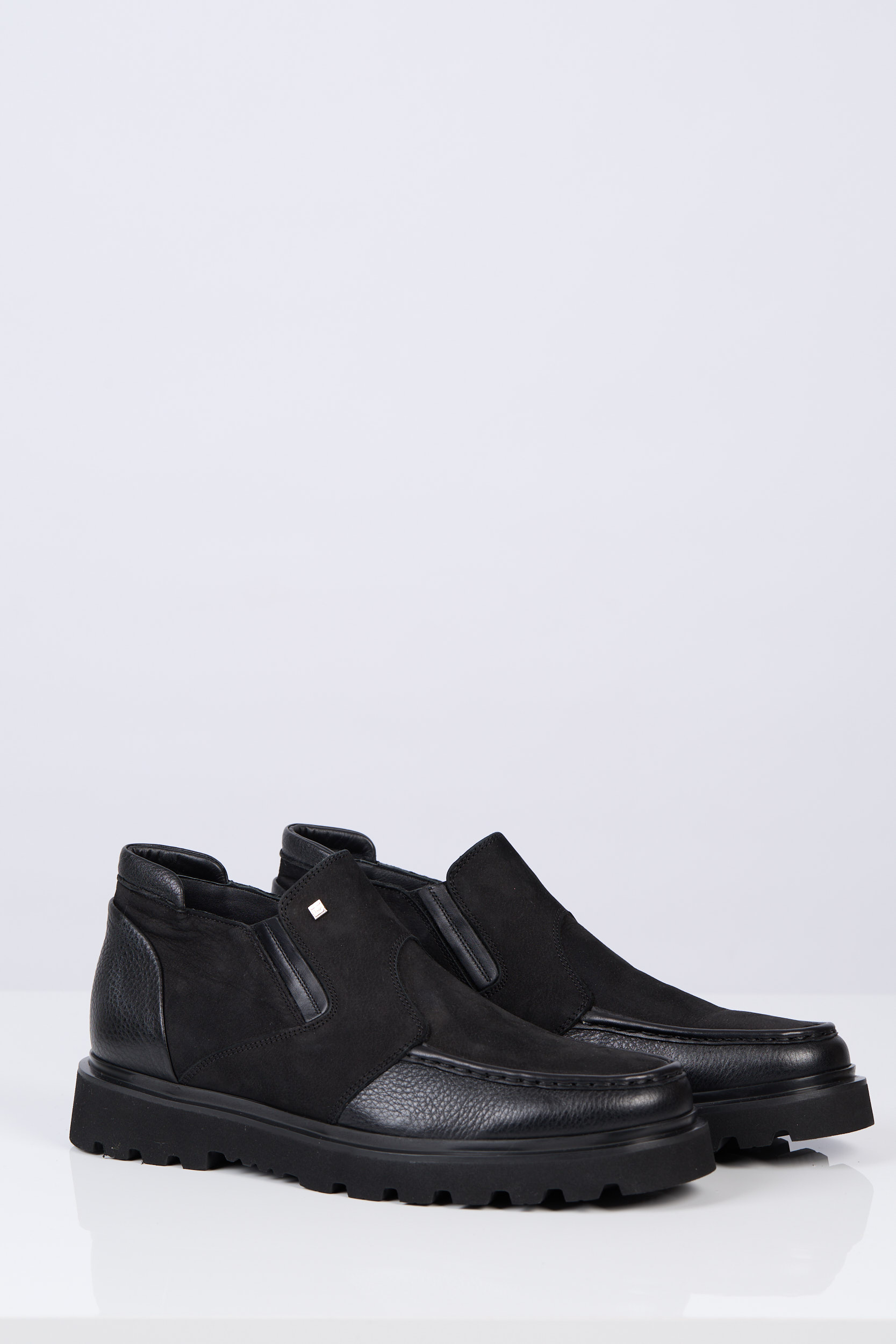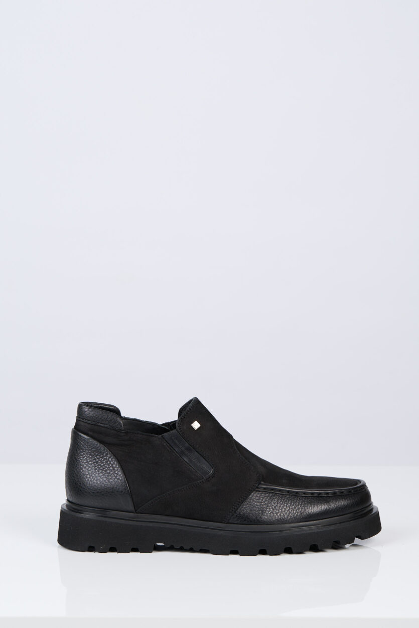 Ghete bărbătești realizate dintr-o combinație elegantă de piele naturală și piele întoarsă. Modelul fără șireturi, cu inserții elastice, permite o încălțare ușoară și o potrivire confortabilă. Talpa groasă și aderentă oferă stabilitate, iar interiorul moale din piele asigură confortul pe tot parcursul zilei. O alegere ideală pentru sezonul rece și un stil urban modern.