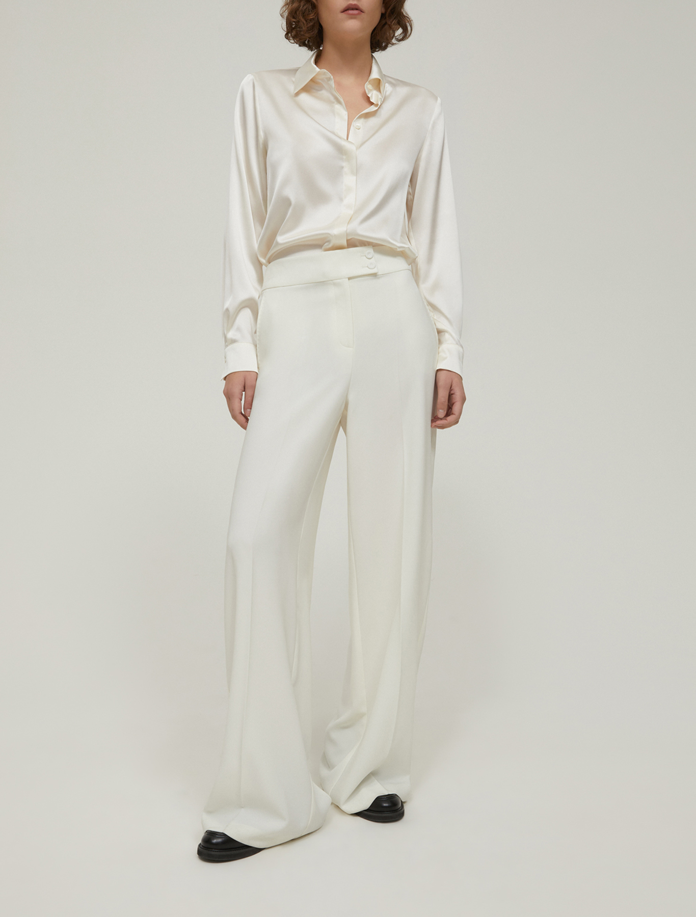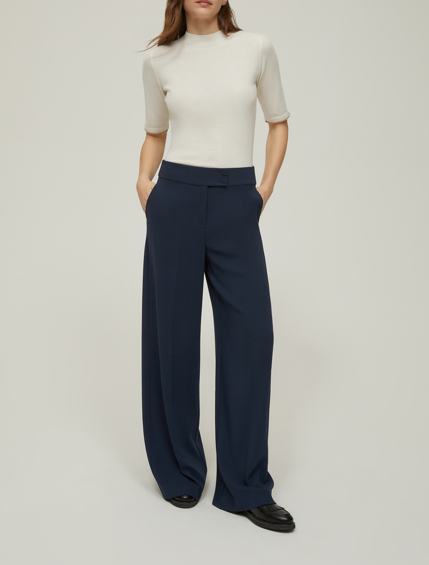 Pantalonii largi de damă sunt o piesă elegantă și modernă, ce adaugă lejeritate și rafinament ținutelor. Realizați din material dens, care își păstrează forma, creează o siluetă alungită și feminină. Talia înaltă și liniile fluide pun în valoare proporțiile corpului și adaugă un aer sofisticat.