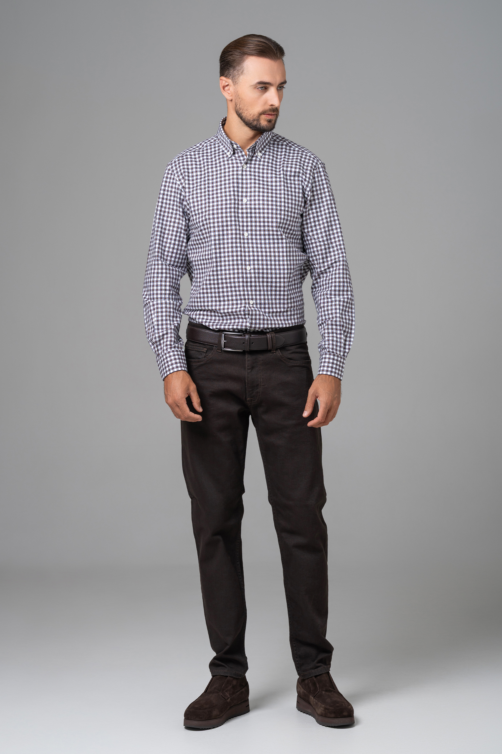 Această cămașă bărbătească în carouri clasice completează perfect atât ținutele casual, cât și pe cele office. Croiala comodă cu mânecă lungă și guler prins cu nasturi oferă confort și un aspect modern.