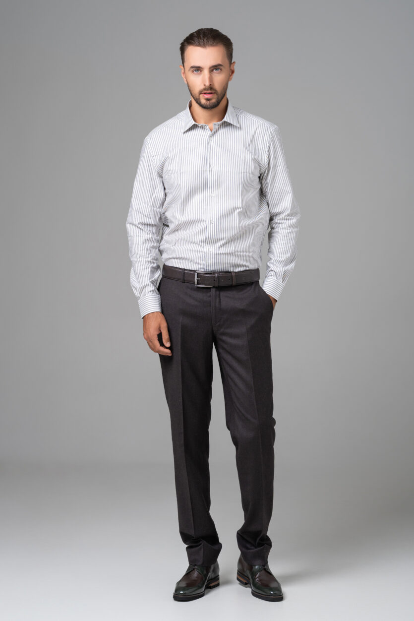 Gulerul tradițional și croiala sobră oferă un aspect elegant, în timp ce materialul de calitate asigură confort și păstrează un look proaspăt pe durata întregii zile. Nasturii și detaliile atent lucrate subliniază rafinamentul brandului.