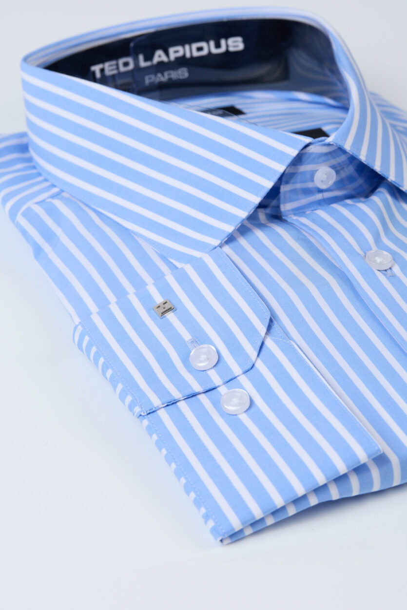 Cămașă bărbătească albastră Ted Lapidus cu dungi din bumbac