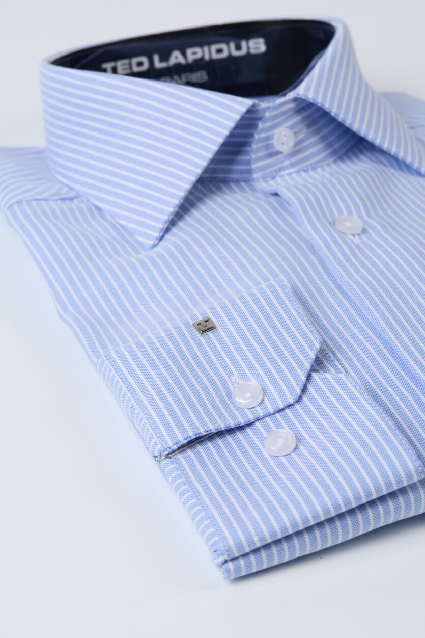 Brandul Ted Lapidus este recunoscut pentru atenția la detalii, iar această cămașă confirmă reputația prin croiala impecabilă, nasturii de calitate și designul rafinat. Modelul este versatil: se potrivește perfect cu costum și sacou sau poate fi purtată simplu cu pantaloni și blugi. Este o piesă de bază pentru garderoba masculină, potrivită atât pentru muncă, cât și pentru ocazii deosebite.