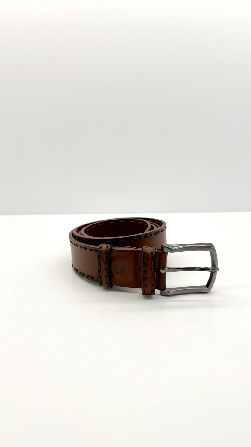 Curea bărbătească din piele naturală, cu model geometric embosat și cataramă metalică elegantă. Design versatil, potrivit atât pentru ținutele casual, cât și pentru cele office. Accesoriu rezistent și modern, perfect pentru fiecare zi.