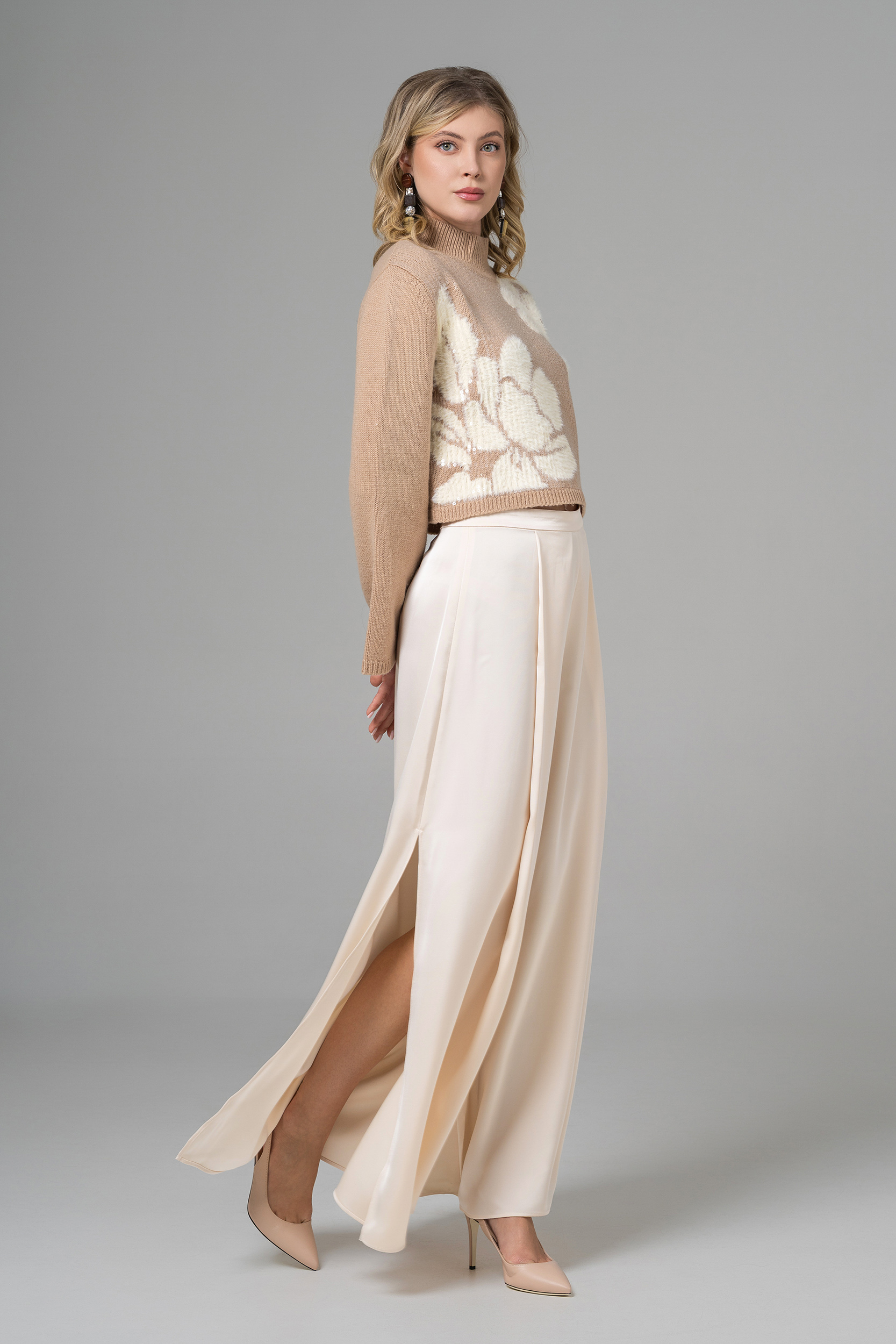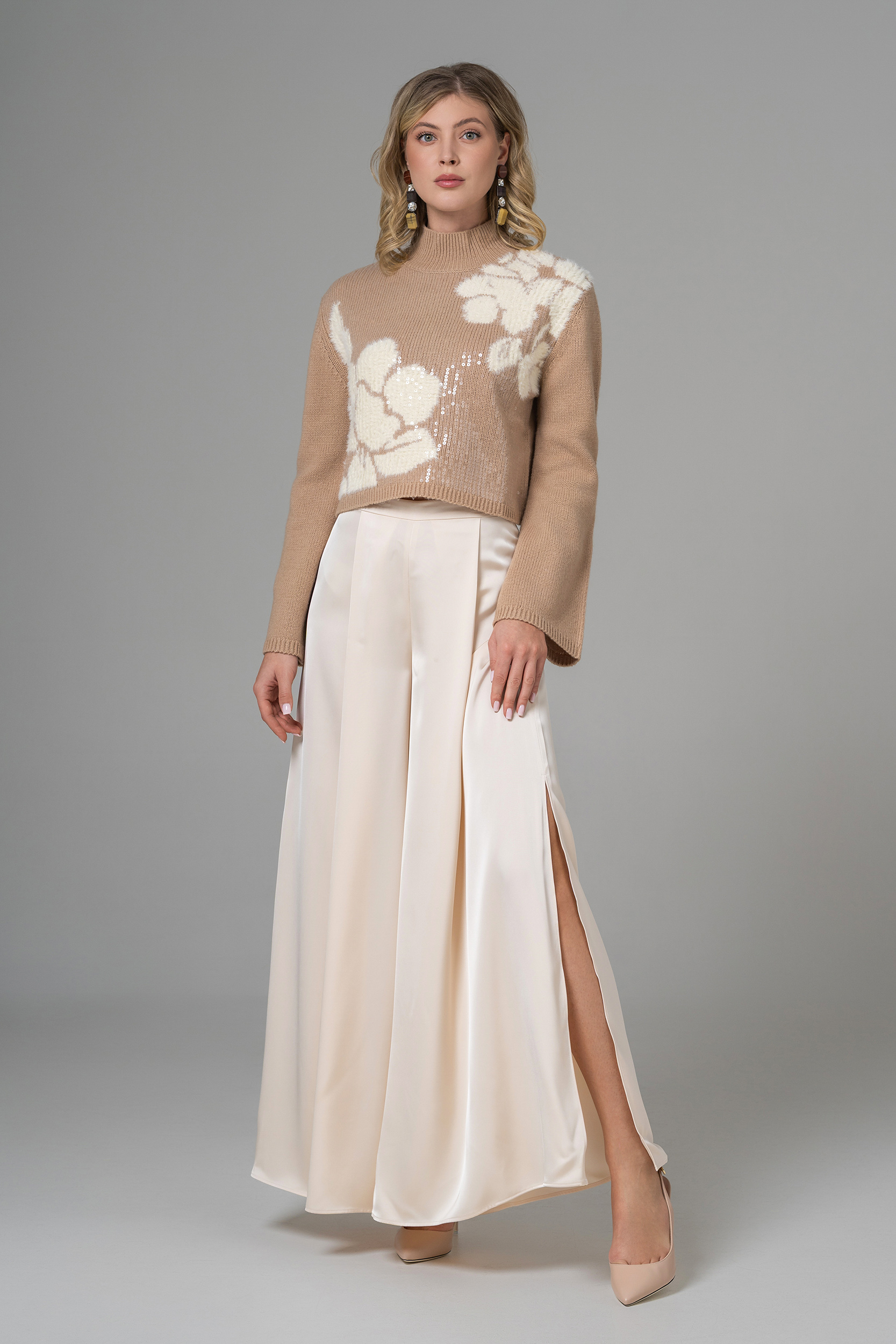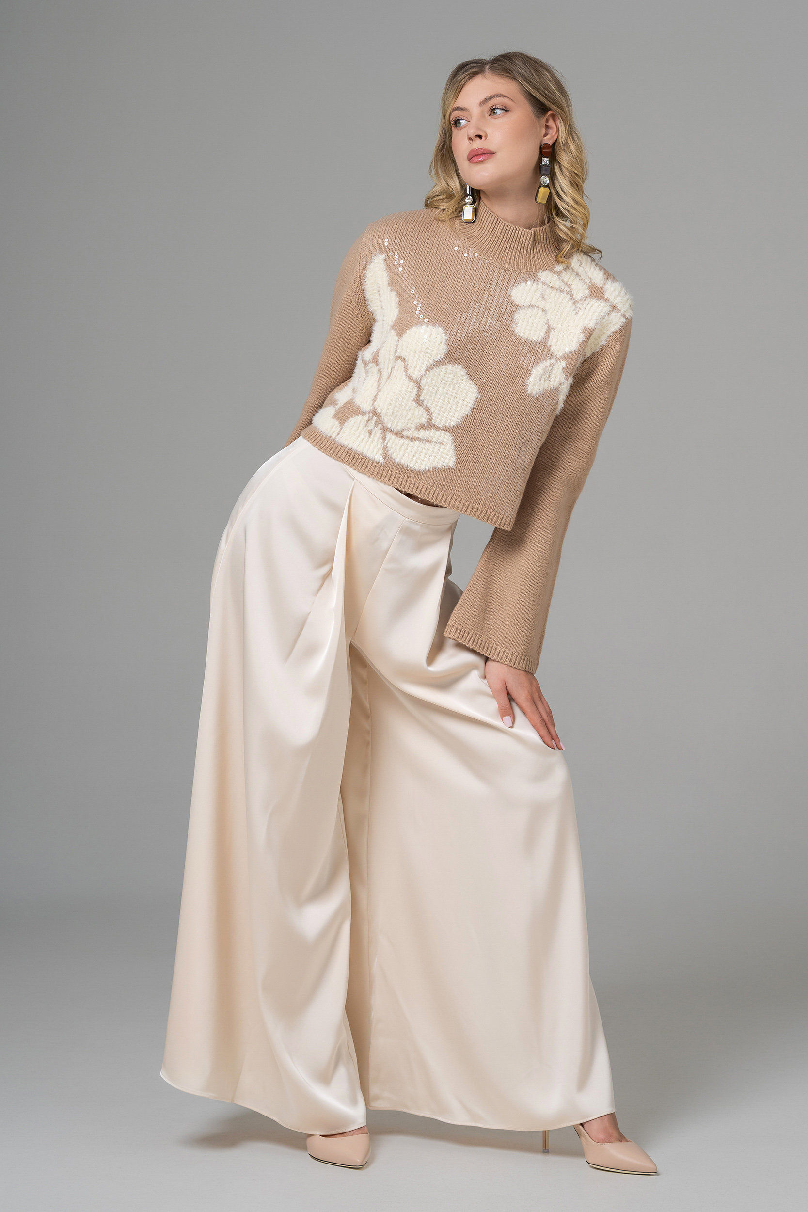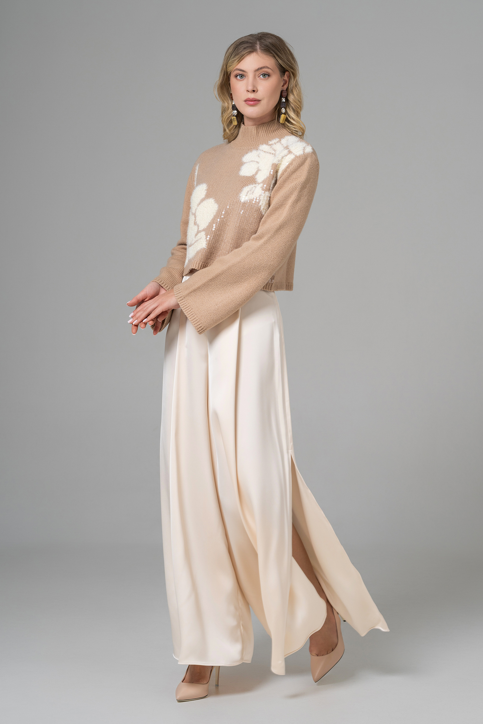 Pantaloni eleganți și largi pentru femei, cu talie înaltă și croială fluidă, oferă un look rafinat și modern. Țesătura lejeră se așază frumos și alungește vizual silueta. Perfecți pentru birou, evenimente sau ținute casual de vară. Se potrivesc excelent cu topuri și bluze deschise la culoare.