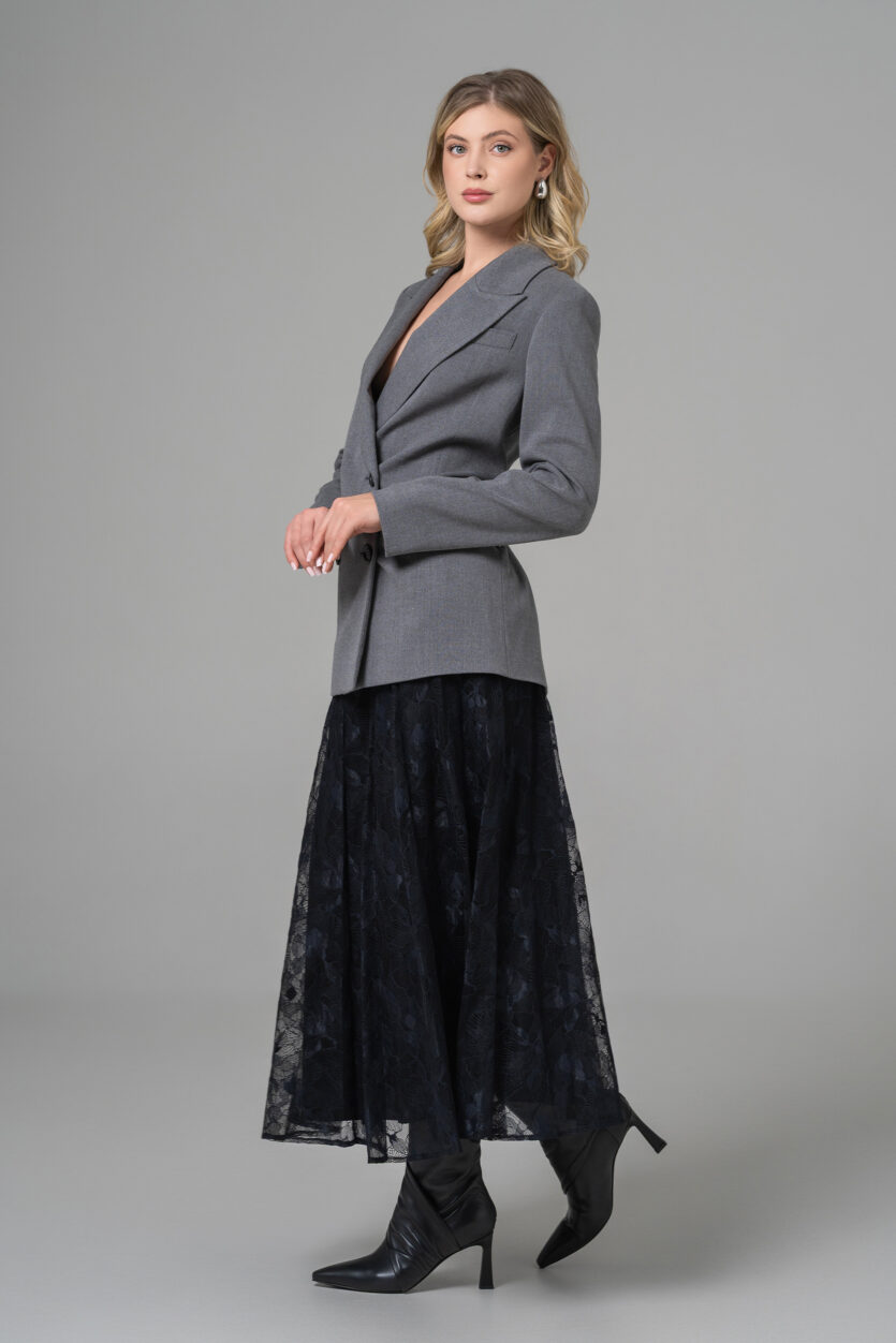 Această fustă din dantelă pentru femei este destinată celor care apreciază feminitatea și confortul. Dantela delicată cu căptușeală moale evidențiază silueta și adaugă rafinament oricărei ținute. Se combină perfect cu sacouri, cămăși sau topuri, fiind potrivită atât pentru birou, cât și pentru ocazii speciale. Croiala atent lucrată și calitatea materialelor o transformă într-o piesă versatilă, perfectă pentru orice sezon.