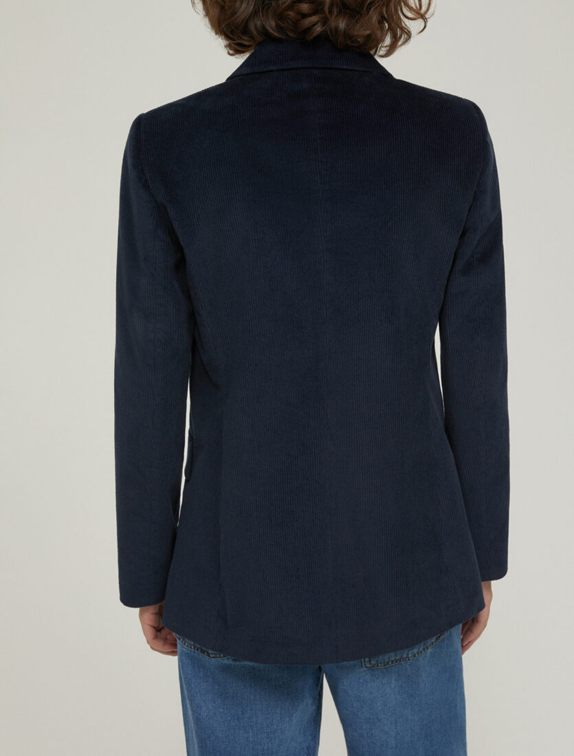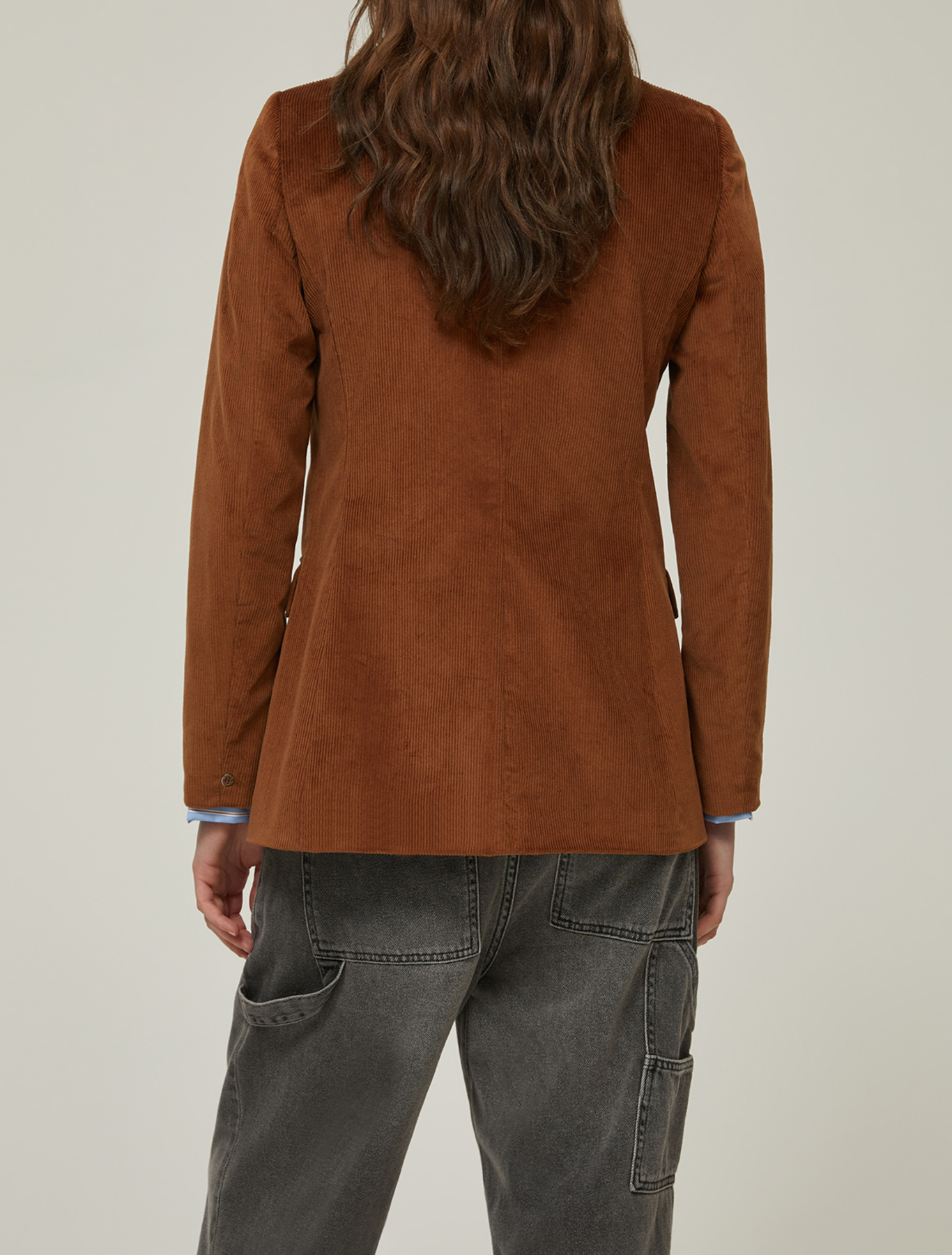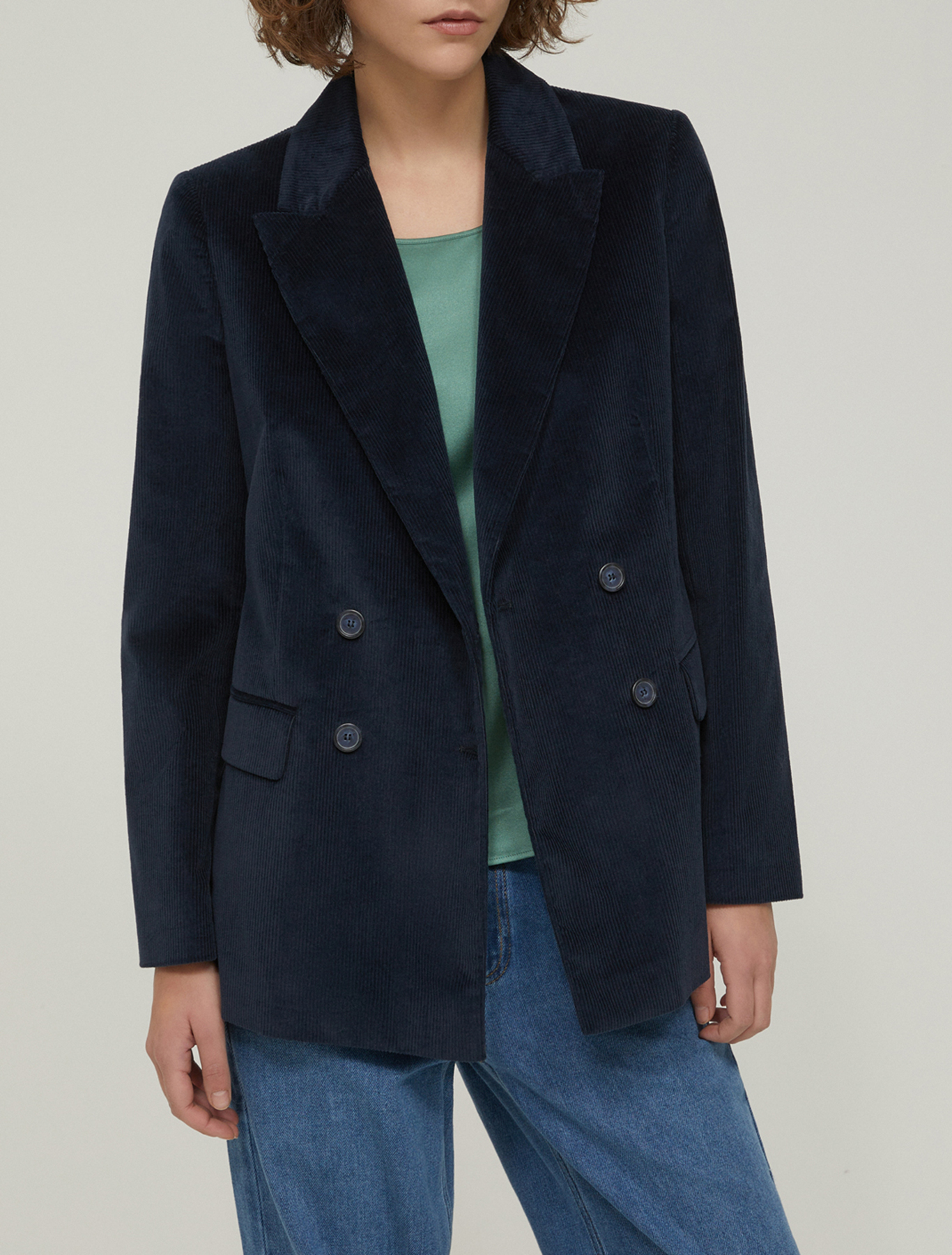 Sacou pentru femei, croi cambrat, cu rever clasic și închidere la două rânduri de nasturi. Modelul este prevăzut cu buzunare laterale cu clapetă și o linie elegantă a umerilor. Sacoul se remarcă prin silueta modernă și versatilitatea sa: se combină ușor cu pantaloni, blugi sau fuste. Este ideal pentru ținute office, întâlniri business și look-uri de zi cu zi. O piesă practică și rafinată, care adaugă stil și eleganță garderobei feminine.