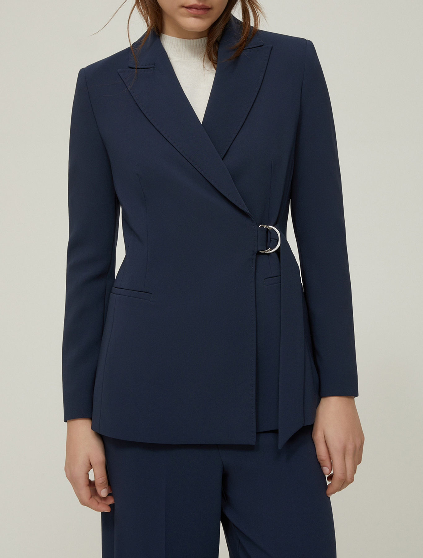 Sacoul clasic de damă este o piesă esențială pentru o garderobă elegantă. Croiala cambrată scoate în evidență silueta, iar culoarea bleumarin adaugă rafinament și profesionalism. Detaliile atent realizate și sistemul de închidere modern oferă un plus de stil.