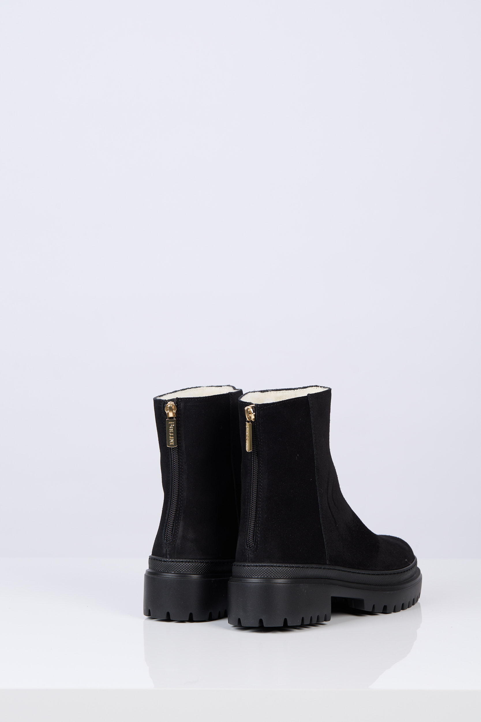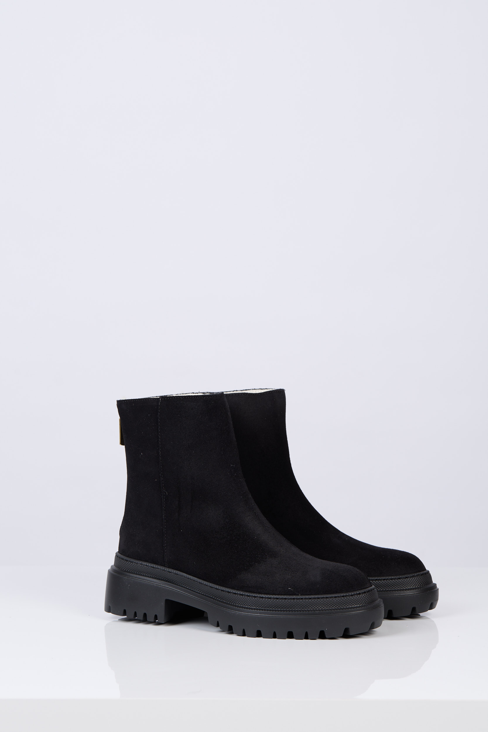 Aceste ghete pentru femei din piele întoarsă sunt alegerea perfectă pentru sezonul rece. Designul minimalist și talpa masivă oferă stabilitate și confort la fiecare pas. Interiorul moale și călduros asigură o purtare plăcută chiar și în zilele friguroase. Datorită aspectului versatil, ghetele se potrivesc perfect cu blugi, paltoane sau jachete, completând orice ținută modernă.