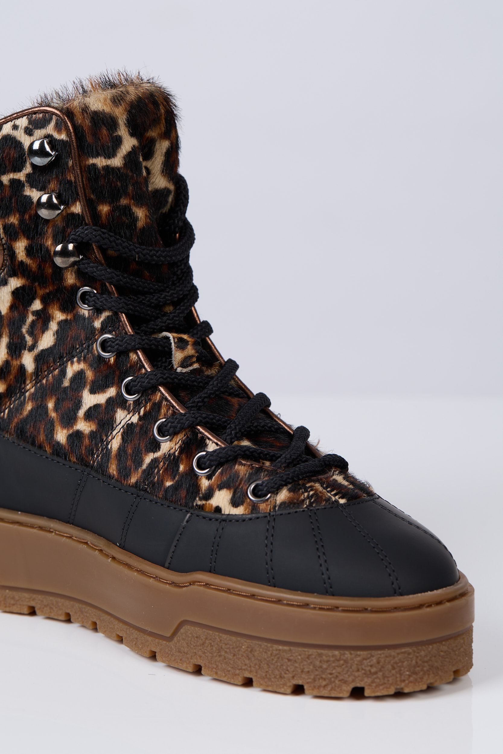 Aceste ghete de iarnă pentru femei cu imprimeu leopard combină confortul cu stilul modern. Realizate din materiale combinate — piele rezistentă, textil moale și interior călduros — oferă protecție perfectă împotriva frigului. Talpa groasă și profilată asigură stabilitate și aderență pe orice suprafață. Imprimeul leopard adaugă un plus de personalitate și face din aceste ghete piesa centrală a oricărei ținute de iarnă.