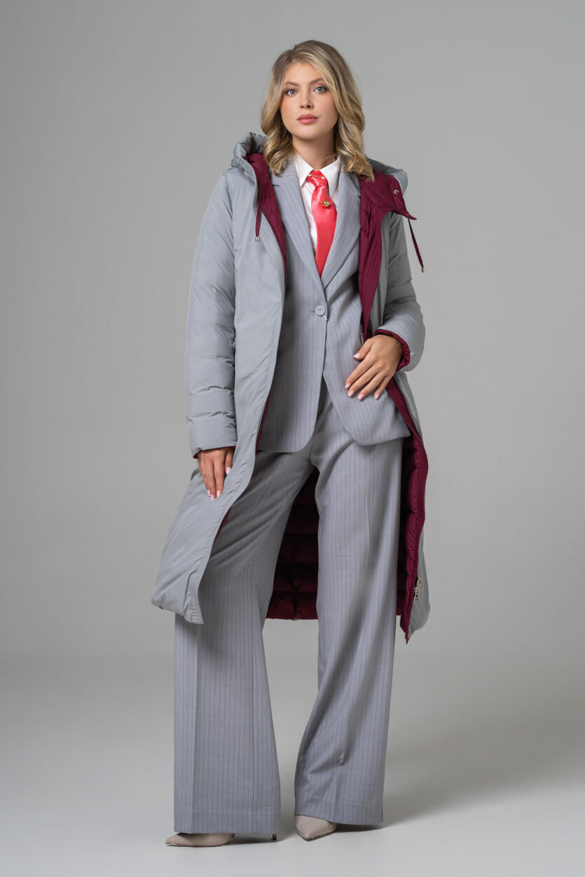 Geaca reversibilă de damă cu glugă este o piesă practică și modernă, perfectă pentru sezonul rece. Partea gri oferă un aspect elegant și clasic, iar partea vișinie adaugă un plus de stil și personalitate. Designul dublu oferă confort termic excelent și posibilitatea de a crea două ținute diferite cu o singură geacă. Ideală pentru femeile care apreciază versatilitatea și eleganța.