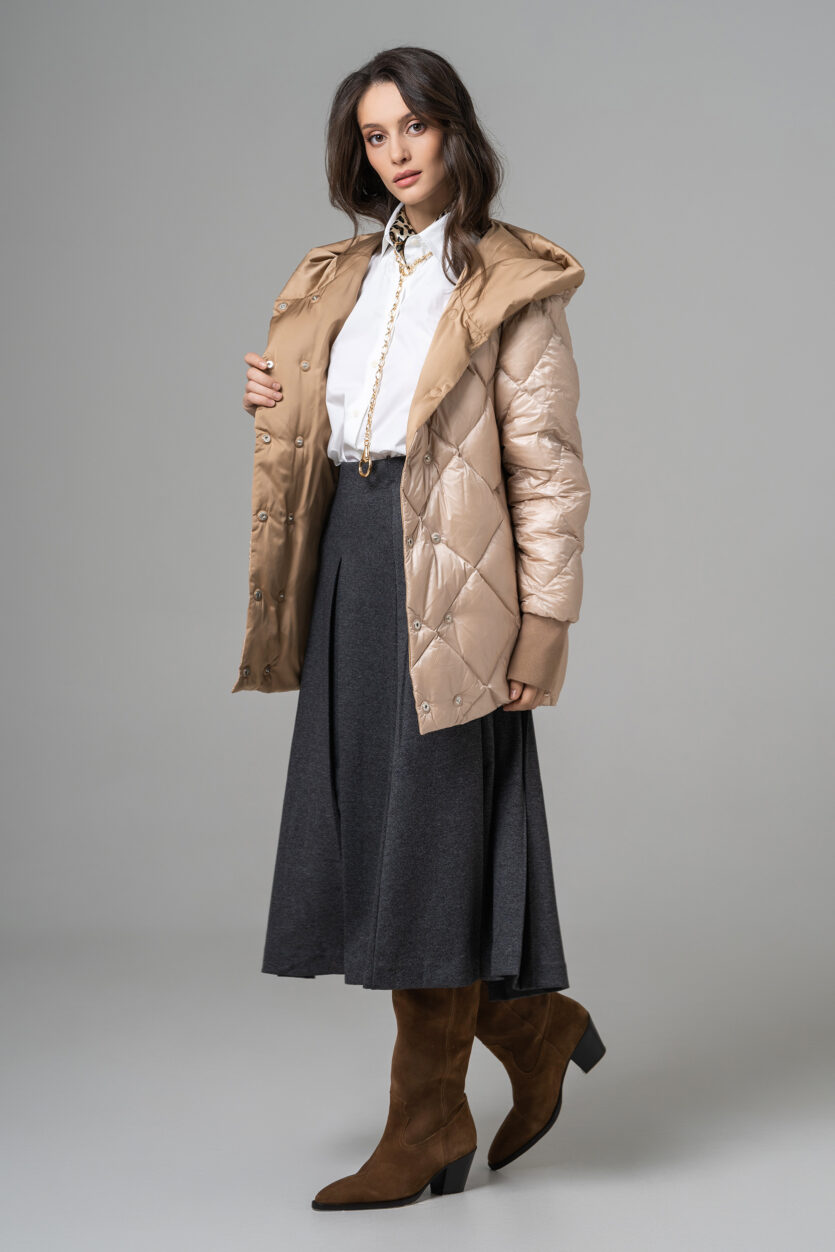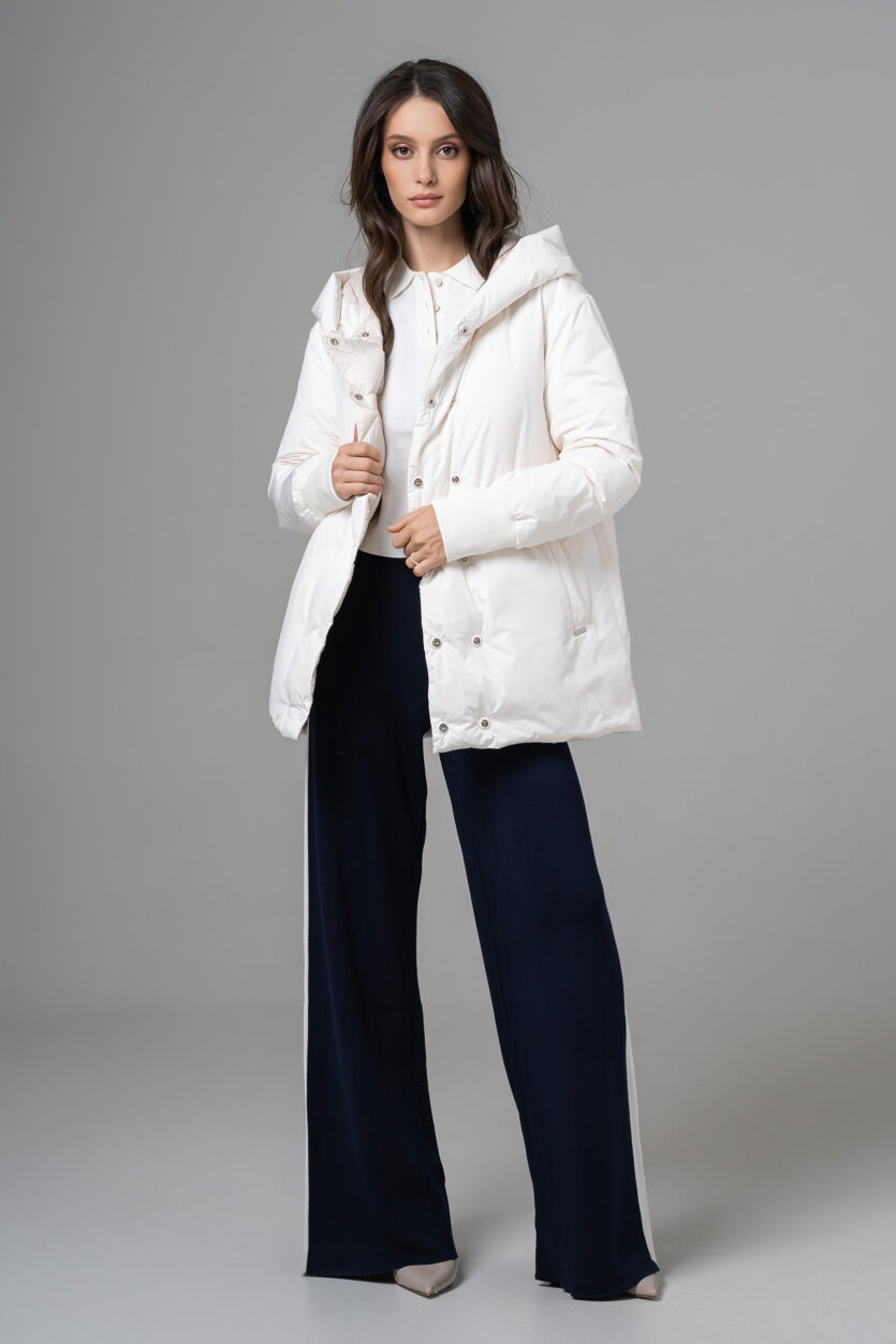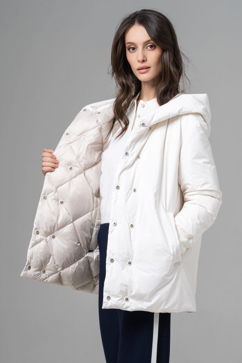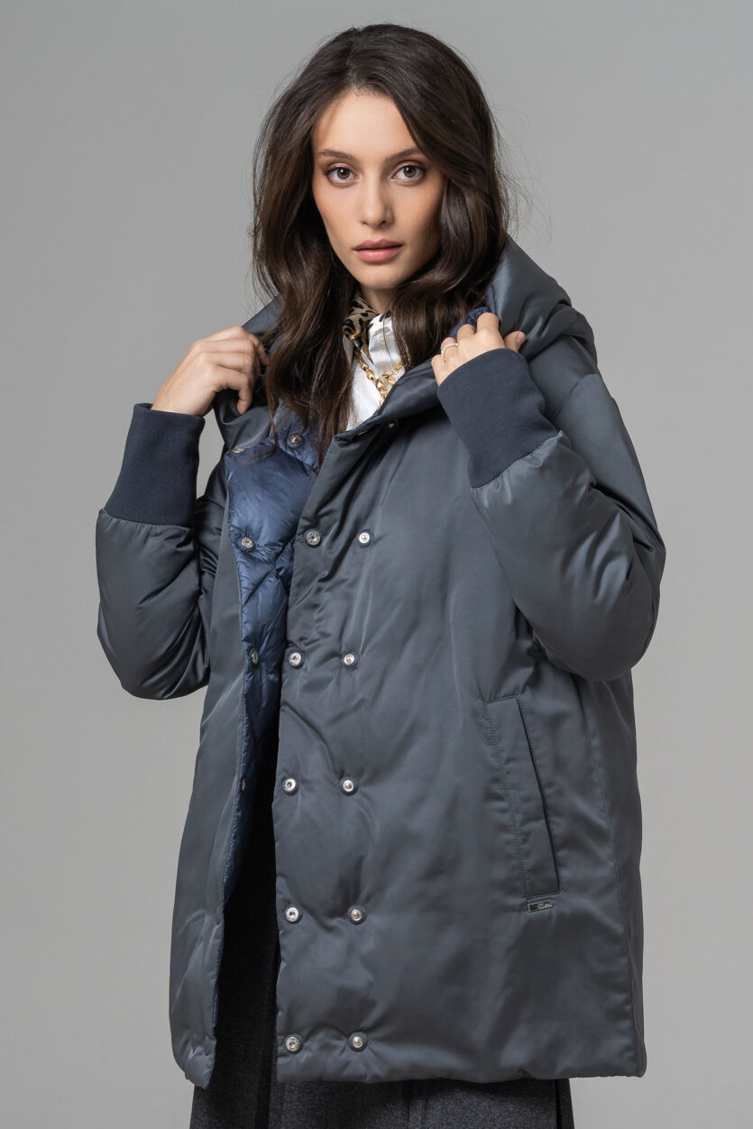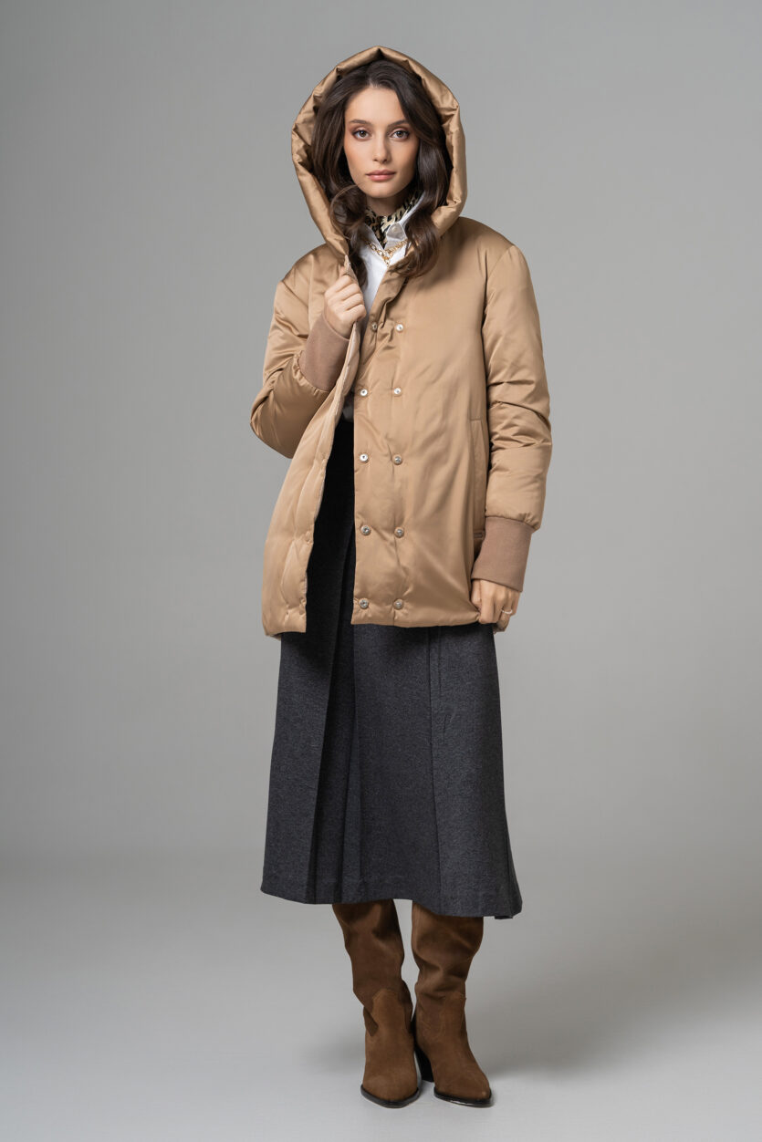 Geaca reversibilă scurtă de damă cu glugă oferă două stiluri într-o singură piesă. O parte are o nuanță deschisă, elegantă, perfectă pentru un look rafinat, iar cealaltă parte adaugă un accent modern și urban. Este ușoară, călduroasă și confortabilă, ideală pentru zilele reci. Designul reversibil permite adaptarea rapidă la orice ținută sau ocazie.