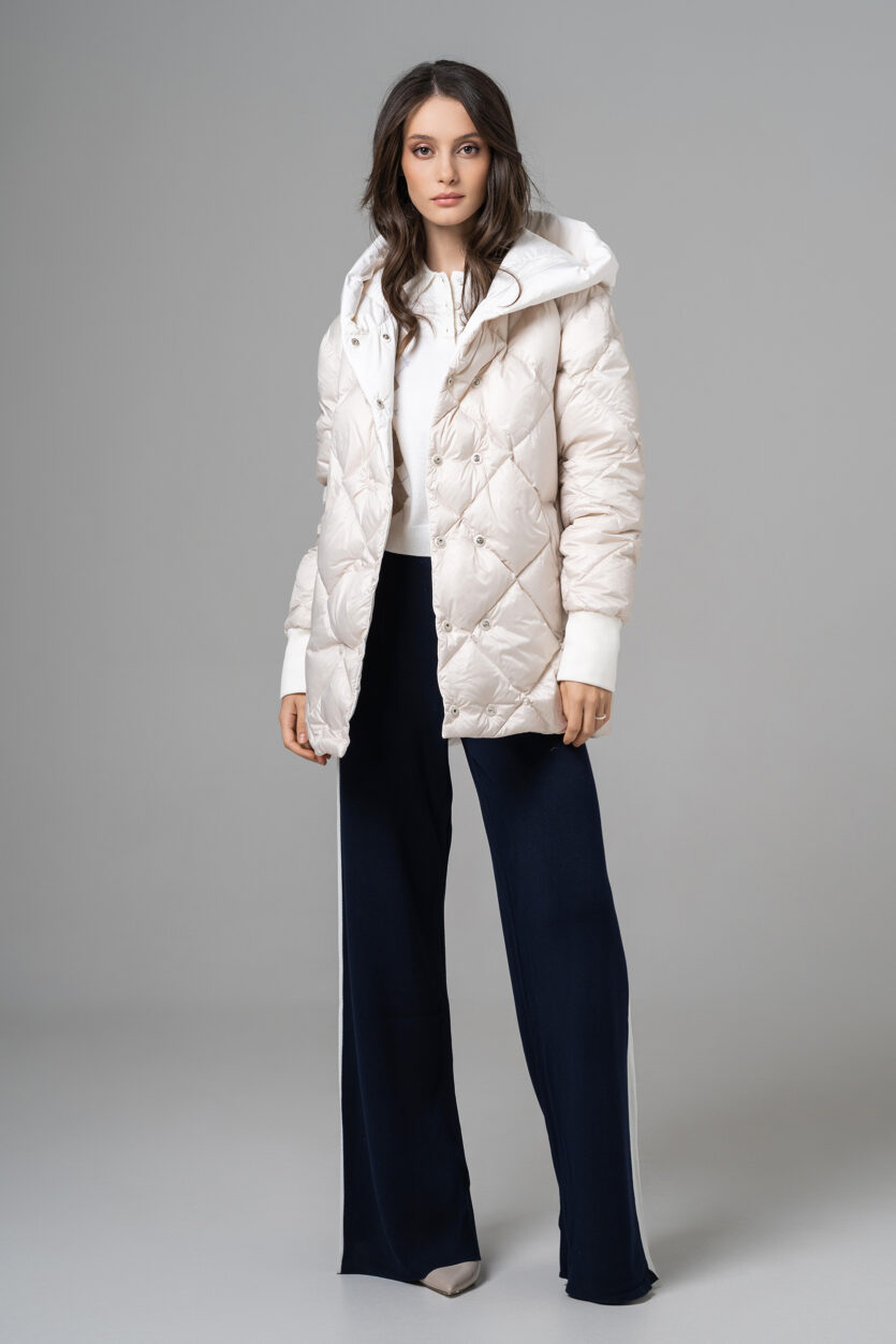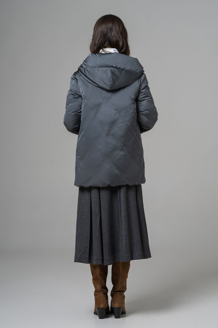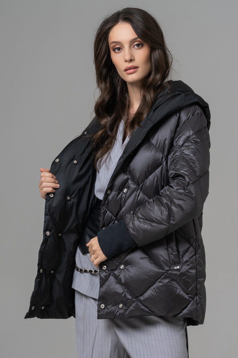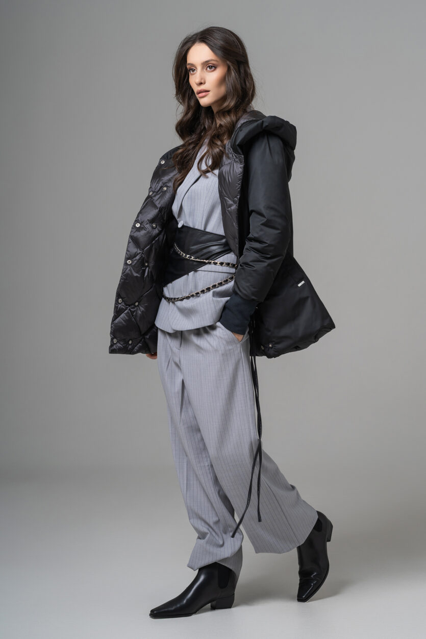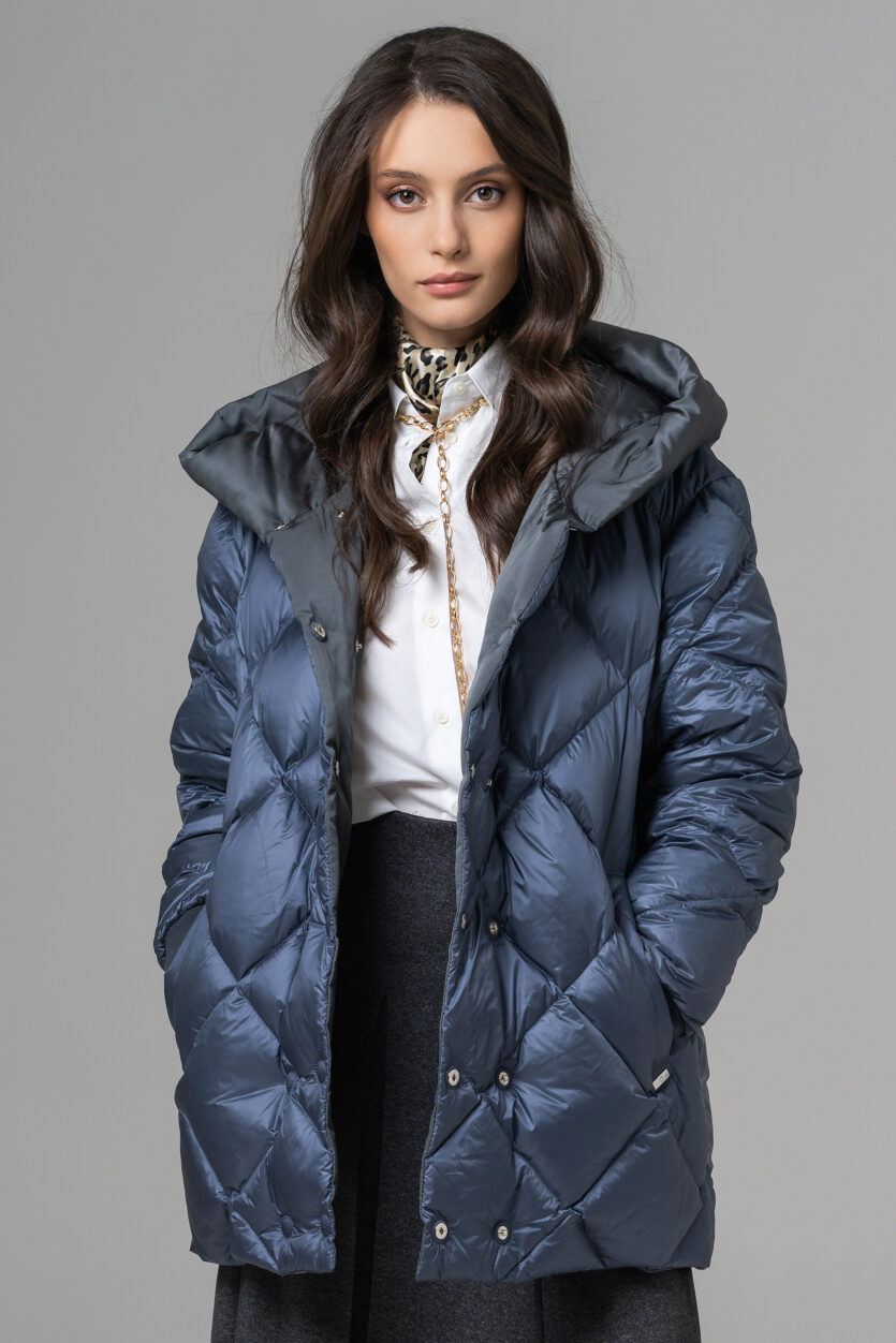 Geaca reversibilă scurtă de damă cu glugă oferă două stiluri într-o singură piesă. O parte are o nuanță deschisă, elegantă, perfectă pentru un look rafinat, iar cealaltă parte adaugă un accent modern și urban. Este ușoară, călduroasă și confortabilă, ideală pentru zilele reci. Designul reversibil permite adaptarea rapidă la orice ținută sau ocazie.