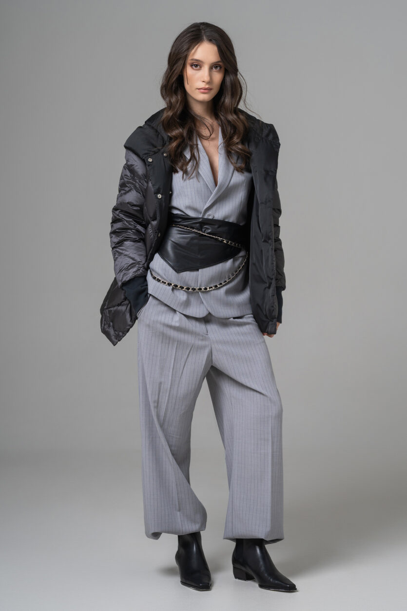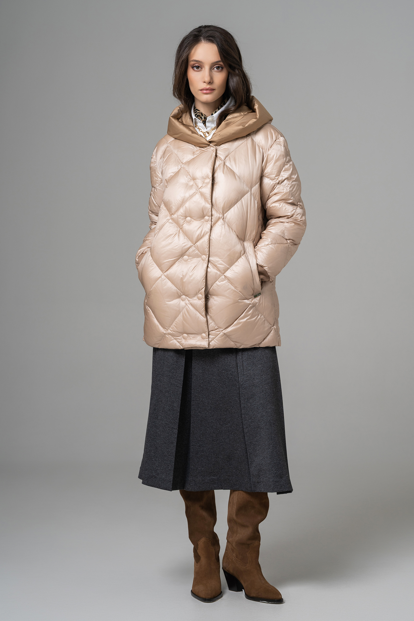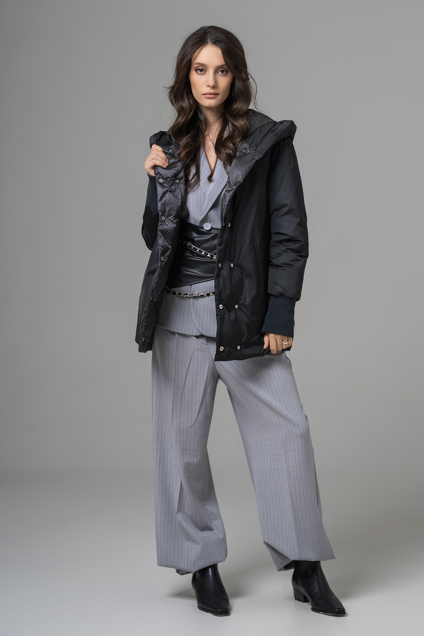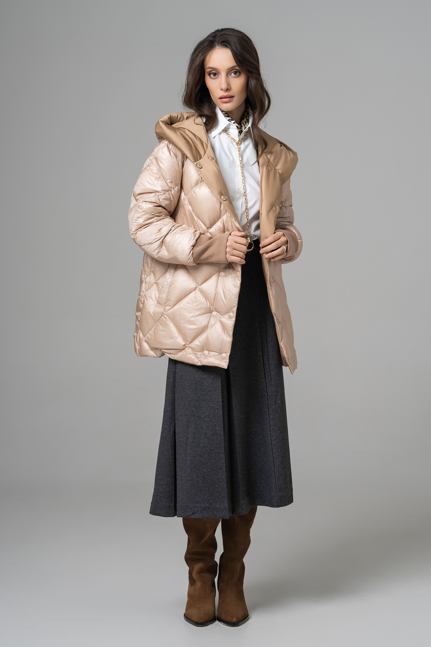 Geaca reversibilă scurtă de damă cu glugă oferă două stiluri într-o singură piesă. O parte are o nuanță deschisă, elegantă, perfectă pentru un look rafinat, iar cealaltă parte adaugă un accent modern și urban. Este ușoară, călduroasă și confortabilă, ideală pentru zilele reci. Designul reversibil permite adaptarea rapidă la orice ținută sau ocazie.