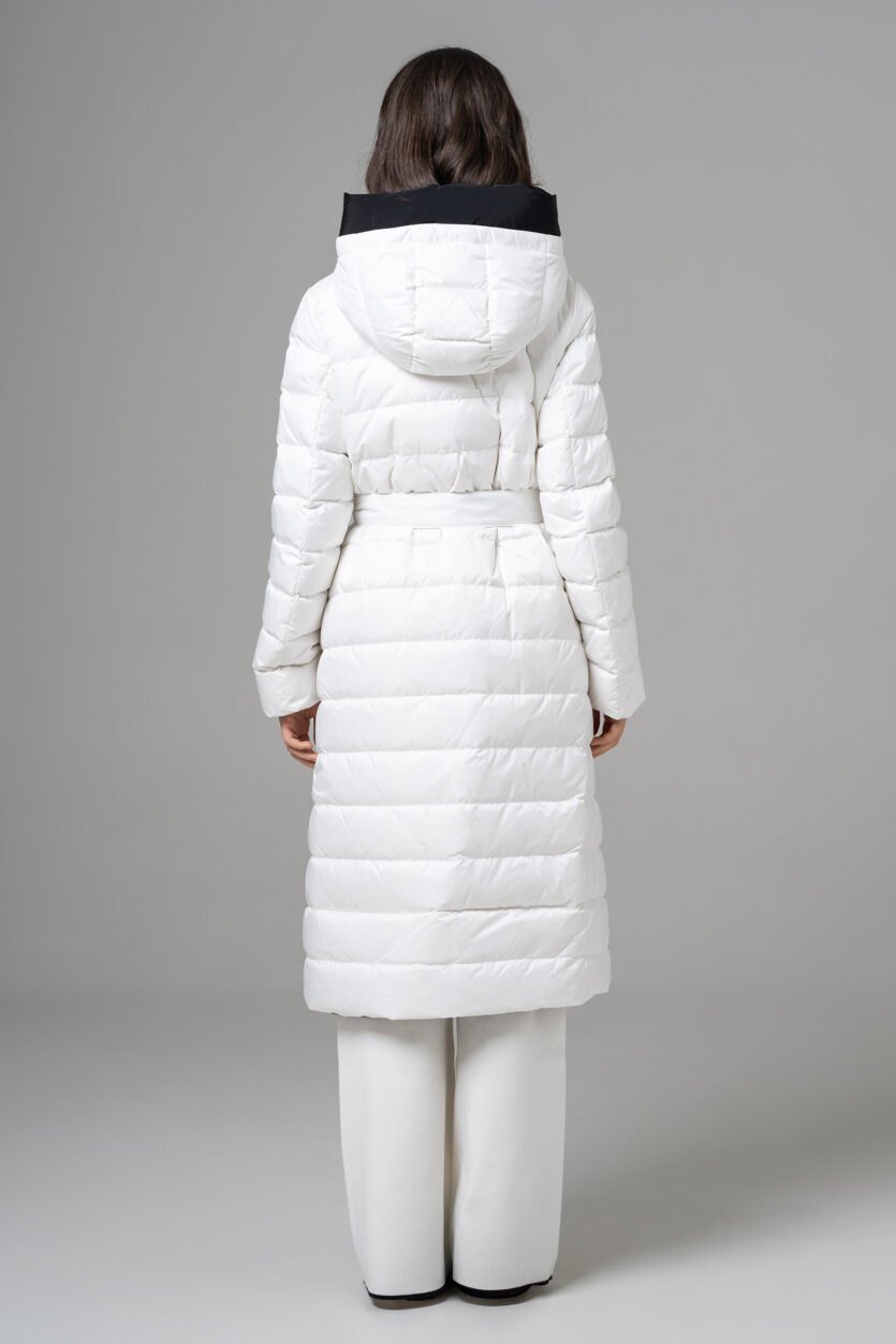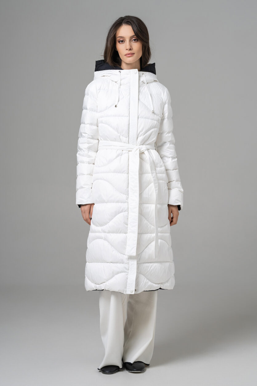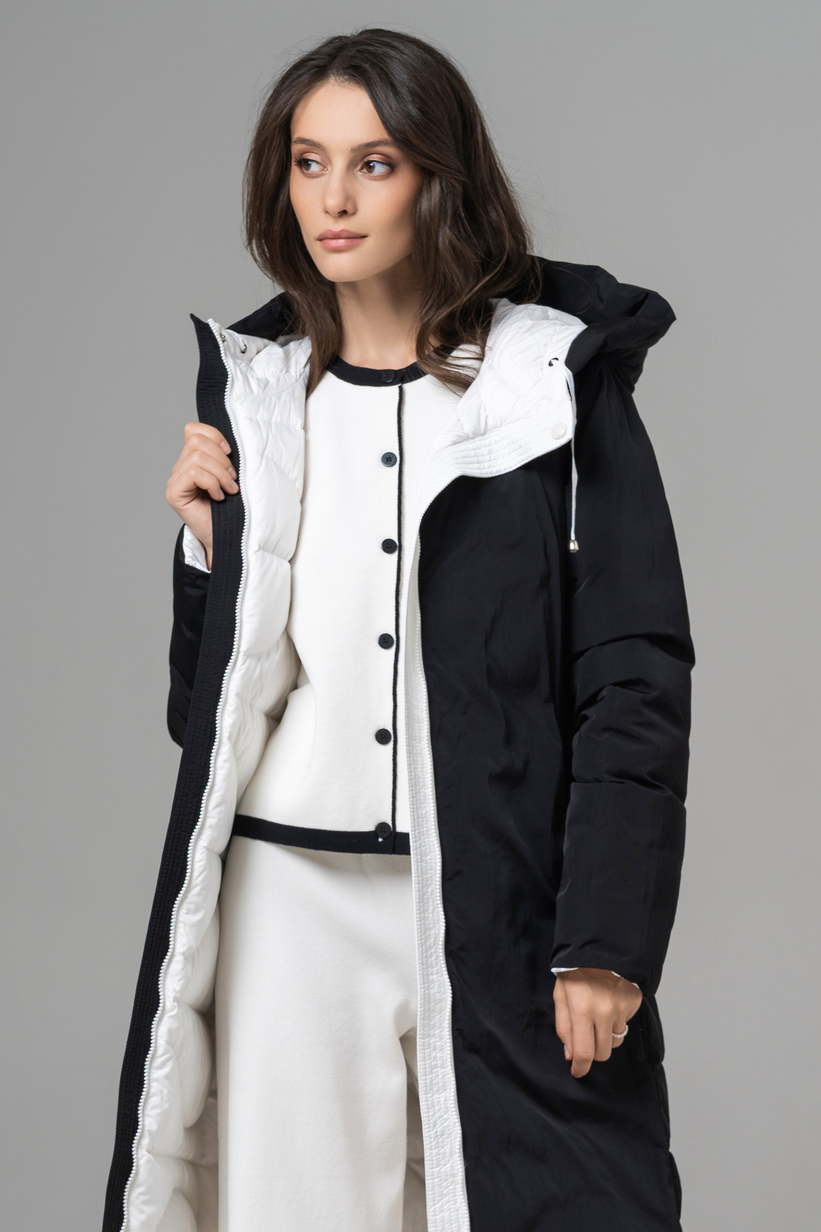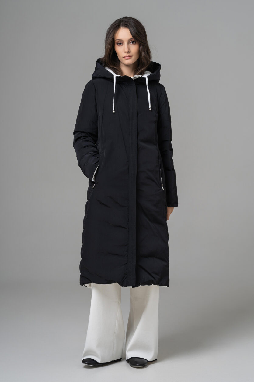 Geaca de damă reversibilă lungă cu glugă combină eleganța și funcționalitatea într-o singură piesă. Partea albă oferă un aspect rafinat, iar cea neagră un stil urban modern. Croiala lungă protejează perfect de frig, iar materialul ușor și călduros asigură confort zilnic. Ideală pentru iarnă și începutul primăverii.