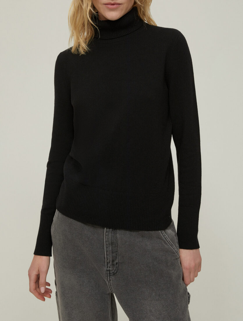 Maleta de damă cu guler înalt este o piesă practică și versatilă pentru orice garderobă. Realizată din tricot moale, oferă confort la purtare și își păstrează forma chiar și după spălări repetate. Croiala dreaptă și manșetele elastice asigură o potrivire comodă și un stil minimalist.