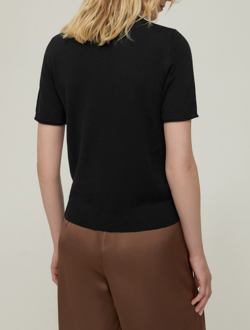 Puloverul de damă cu mânecă scurtă este o piesă practică și elegantă pentru garderoba modernă. Confecționat din tricot moale, plăcut la atingere, își păstrează forma după spălare. Mâneca scurtă oferă lejeritate și confort, iar gulerul discret adaugă o notă de rafinament și simplitate.